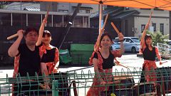 | フィニッシュ会場に入ると和太鼓の演奏でお迎え | ||