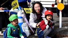 | ●城南地区の応援スポット=11km地点=地元町会連合会の応援です。 | ||