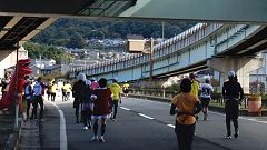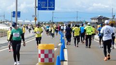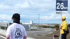| ●走快・応援【コース後半】今回コース変更になった海側環状道路を走る。 | ||