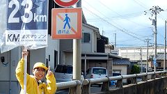 | 山側環状道路を走る(田上小学校口)=涌波太鼓 | ||