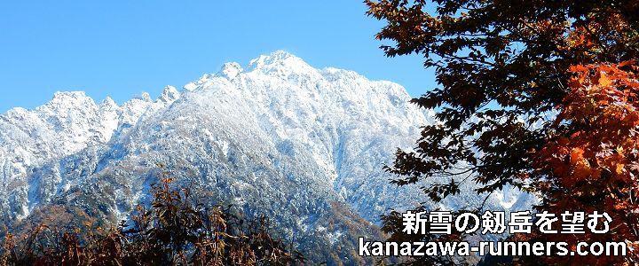 | 金沢マラソン2023の走り込み練習を済ませ、直前の仕上げは富山県の【中山=標高1255m】に登山。ここは剱岳の絶好の展望台だ。標高差600mの稜線を直登するので歩行距離は短いが勾配はキツイ。雲一つない青空に、新雪の立山連峰がまぶしい。いつも黒い姿の岩の殿堂・剱岳は真っ白に雪化粧。頂上付近は雪煙も見られる。右手には、2004年に登った剱御前から剱岳頂上に続く稜線。正面には、2014年に登った早月尾根。記憶を織り交ぜながら絶景を堪能した。 |