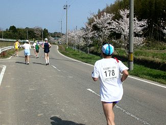 | 271(09:14)先行集団が遠くに。。 | 275(09:22)桜並木を走ります |