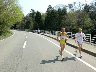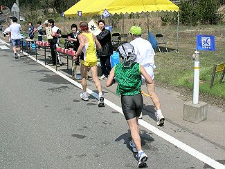 | 304(10:59)_カメラを向けられましたが。。 | 305_折り返しのランナー。傾斜地の花がキレイでした。 |