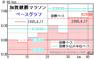 | 大会@ | 加賀健勝マラソン:関門クリアのための走行ペース表(健康ランニングのために) |