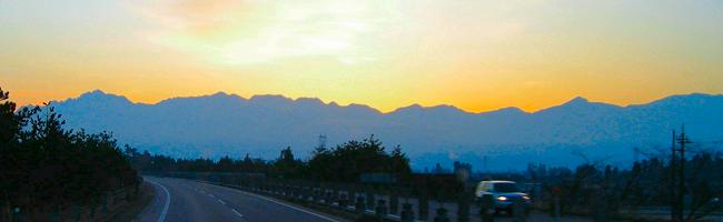 | 2月17日6:42 北陸自動車道で東京に向かう途中、立山連峰からの日の出を迎える(劔岳〜立山〜薬師岳) | ||||||||||