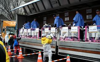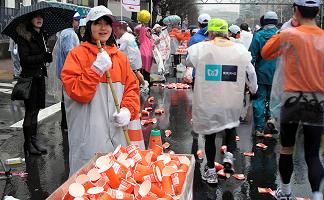 コース上の給水ポイントは、15箇所。2.5km間隔という、十分な体制だ。ハーフを過ぎたら給食が用意されていることになっているが、バナナのひとかけらも見ることができなかった。給水ポイントを通る度に、本当に用意したのかと信じられない思いだ。TVニュースを見た知人の話や翌日の新聞を見て、準備した量の少なさに唖然としたのは私だけだろうか。私は全ランナーの中間位でフィニッシュしているので、過半数のランナーが給食を受けることができなかったことになる。 ボランティアの皆さんも、大会の盛り上がった途端に提供する食材が底をついたのではお手上げだ。ランナーと同様な気持を持たれたに違いない。 ホノルルマラソンは、給食無しと案内されている(暑さもあるが)ので、バナナやクッキーをウェストポーチに用意して走る。地方の大会では、給食に工夫をしてランナーを楽しませてくれる。 用意すると案内してあれば当てにもする。幸いコース沿道にコンビニが点在する。沢山のランナーが飛び込んでいるのを目にした。 生憎の冷雨となったが、都心を走れる楽しさを満喫した大会で、関係者の努力には感謝している。ただ、給食に関する限りお粗末としか言いようがない。 次年度は、どのように改善されるか? 給食は、準備〜提供、ゴミ処理など作業が複雑でスタッフの習熟も必要。食材を準備しただけでは解決できない問題を多く含む。それでも、ランナーは期待している。 一方、ランナー側も自衛が必要だ。私は黒飴2個とアミノサプリメント粉末2袋をいつも携帯。万が一の場合の交通費と給食費も最低限ポケットに入れている。地方の大会では、使うこともなかったが、今回は、これが役立った。 |