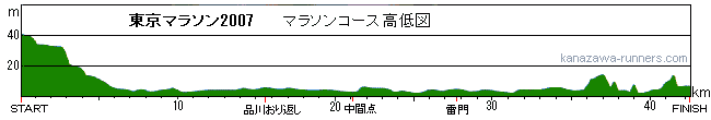 | コースは東京の代表的な名所を織り込んである。それだけでも走りたくなる設定だ。なかでも品川駅前と浅草雷門の2か所の折り返しが良い。日比谷=品川間、銀座=浅草間の約33kmが対面走行となっている。建物や景色を両方向から楽しむことができる。ランナーの列からマンモス大会を実感しながら走れる。後続の仲間と出会える楽しみもある。写真撮影のチャンスも増える。応援の壁がそれをさらに増幅してくれる。 | ||||||||||