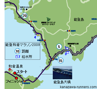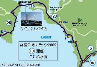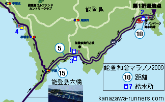 | コース地図を参照しながら大会報告をお楽しみください。→能登和倉マラソン2009:コース図 | |||