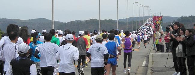 | スタート〜能登島を走る|七尾西湾沿岸〜フィニッシュ|大会報告|参加者の笑顔|2010大会 |