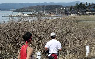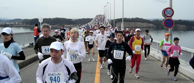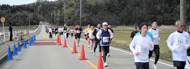 | ●能登島内のコースを巡りました。能登島農道橋(ツインブリッジのと)を通って能登島を離れると、マラソンは後半に入ります。 | |||