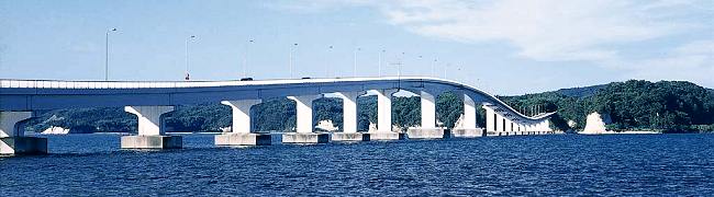 | このコースの目玉は、何んといっても2つの海上橋を渡ることだ。ランニングコースからはその造形を利用する位置から見ることになる。横からみるとその素晴らしさを認識できる。写真と概要を用意しましたので、参考にしてください。 | ||||||||||||||||||||||||