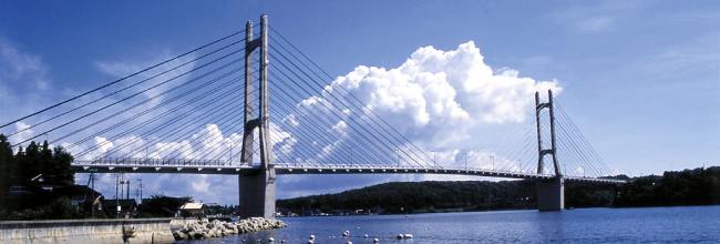 | 長さ1050mの能登島大橋。5〜6分のランニングを楽しめる。=写真提供:ほっと石川旅ネット(写真素材集)= | ||||||||||||||||||||||||