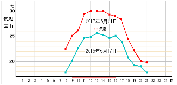 | この大会は私のお気に入りコースです。小規模の大会で静かにマラソンを楽しめる環境が好きです。2017年5月、2年ぶりにこの大会参加を組む。秋の金沢マラソンに備えて練習ランと72歳でのタイム確認が目的です。70歳での目標は5時間以内なのですが、すでに2年経過。 今回(2017年大会)は、快晴。立山連峰もよく見えます。気温は上がってきてスタート時には25℃(富山気象台)。撮りたいと期待している立山を背景にしたランニング・シーンが狙えそうです。撮影ランを楽しもう。 |