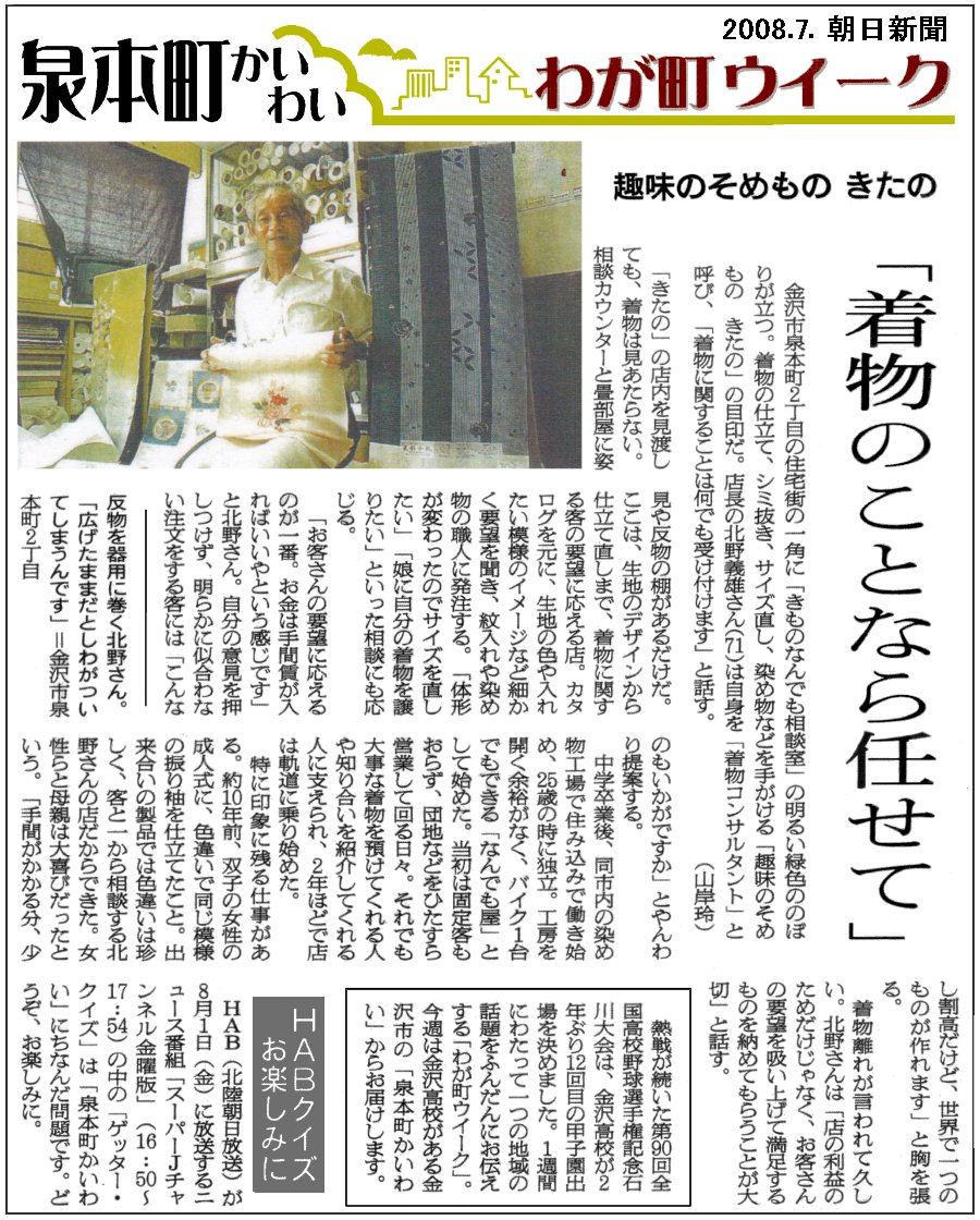 | 北野さんの紹介記事=朝日新聞=2008/07= |
