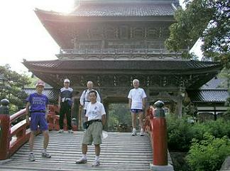 能登門前町の総持寺が、曹洞宗大本山として創建されたのは鎌倉時代のことである。開祖螢山禅師の後を継いだ二代峨山禅師は、居所であった羽咋の永光寺から、門前町の総持寺のお勤めを果たすために、十三里(約52km)の山道を毎日往復したという。この故事にちなんで門前町では年2回の峨山道巡行を企画している。健康ブームの昨今、かなりの参加者を集めて盛大に実施されている様子が、毎年マスコミを通じて広く報道されている。今年はこの壮大な巡行に中央走ろう会会員の石川さんが参加した。その土産話を聞くうちに、みんなの胸が踊った。そして、門前町の企画では一泊をはさんで都合二日間で踏破しているのを、一日で走りきることが出来ないか、という話が持ち上がった。 可否はともかく、なんとか頑張ってみよう、ということで6月5日(土)の早朝、有志6名(石川、林、中嶋、角尾、桑島、杉本)で羽咋の永光寺から門前の総持寺に向かって出発することになった。 結論から言えば、これは成功しなかった。永光寺を出発して志賀町の上棚に到着するまでの眉丈山中の山道が、生い茂る夏草の中に埋もれてしまっていて、コースを見失って山道をあっちへ行ったりこっちへ行ったりということを繰り返している間に、大きく時間を浪費してしまい、第一関門の上棚に到着するまでに2時間も、予定より遅れてしまった。 仕方なく、中間地点である中島町の土川まで車で移動し、ここから後半26kmを走ることにした。かなり暑い日であり、途中の走りやすい舗装道路はともかく、安倶持峠や、南山から古和秀水に至る山道は、夏草の茂りも猛々しい上に足場も悪く、難渋を極めたが、それでも設定した時間内にどうにか走破することができた。 上の写真は、總持寺山門(門前町)での写真である。 走り終わった今、次回の計画に向かって、次の3点を考慮しなければと考えている。 @ 峨山禅師の歩いた道は、地図上でたどると、ほとんど一直線に北上している。これは航空写真で調べたかのように、一途に、そして脇目もふらずに、という禅師の思いを感動的に表している。実際にこの道をたどり北を目指して走ることは、禅師の深い思想を、おぼろげながら身近に体感できる良い機会であった。これは事前に予想できなかったことである。 A しかしながら、禅師の歩いた道を正確にそのままに辿ろうとすることは,無理がある。当時の道と現在の道は違う。時間とエネルギーのロスをできるだけ抑えながら、1日で走破しようとする場合には、禅師の歩いた道とは多少異なっても、できるだけ走りやすい道を選ばねばならない。 B 夏草の生い茂る時期は避けた方が良い。禅師が歩いたのは寒い季節もあり、暑い時期もあったので、季節を云々するのはおかしいという点もあるかも知れないが、ほとんど人が通らないまま、夏草が山道を覆い尽くす季節は避けた方が賢明ではないかと思われる。 これらの諸点を考慮すれば、峨山道を一日で走破することは、それほど難しいことではない。来年以降の近いうちに、再度挑戦したいと思っているところである。 |