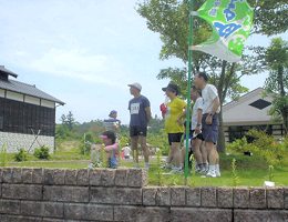 ![]() 応援旗を立てた近藤さん:右から2人目 |