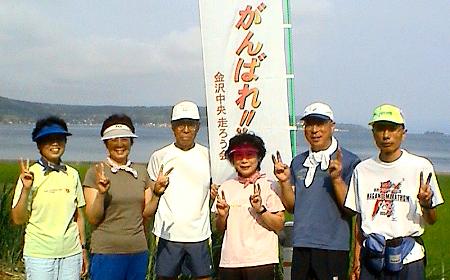 | 『がんばれ!! 金沢中央走ろう会』の応援旗(2004能登島RR) | ||