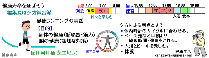 | ホノルルは楽しむ大会、記録は国内(地元)の大会で。これは天野代表の教えの1つ。マラソンをいろんな視点で楽しむ大切さを表現するもの。編集方針の基本にしています。写真取材のテーマは『健康な笑顔』。撮影する自分が、ゆとりのある走りをできていないと、撮られるランナーは苦笑しかできません。 会報『走快』には、ランニング情報が満載だ。それらの一部をWEBに掲載した。次の2編は活動の基本となるもので、自分でも実践したいものだったからだ。 ●あなたもマラソンが走れます。 ●ランニングを継続させる10か条。 練習の継続で、走れる身体に変化していくのを実感します。4シーズン目に3:52:14のベストタイム。6シーズンで24回のマラソン完走。体幹ラン・効率的な走りなどのスキルを日頃の練習で楽しむ走快。 こうした成果は、運動指導書や走技術書、TVのスポーツ・健康番組の情報を自分なりに試行し吸収しながらすすめてきたものだ。2009年10月、7シーズン目に入るところで、緊急入院。筋力や持久力が向上し4時間ペースを維持しようと練習してきた。その分、内臓に疲労が蓄積しストレス対応力が弱っていたと考えている。様子を見ながら練習を再開したが2010年5月マラソン大会の前日に再入院。練習量を激減、大会出場は控え、取材のみ。2012年4月、3シーズンぶりに走ったマラソンは、写真取材しながら4時間38分。ここで確認できたのは、僅かな練習量の中で、2ヶ月で仕上げれたこと。自分でも驚く結果だった。少なくても目的を持った練習を継続すること。マラソンをどう走るかという経験をレース中に生かすこと。この2つは、まさに上記の2つの教えに基づくものだ。 |