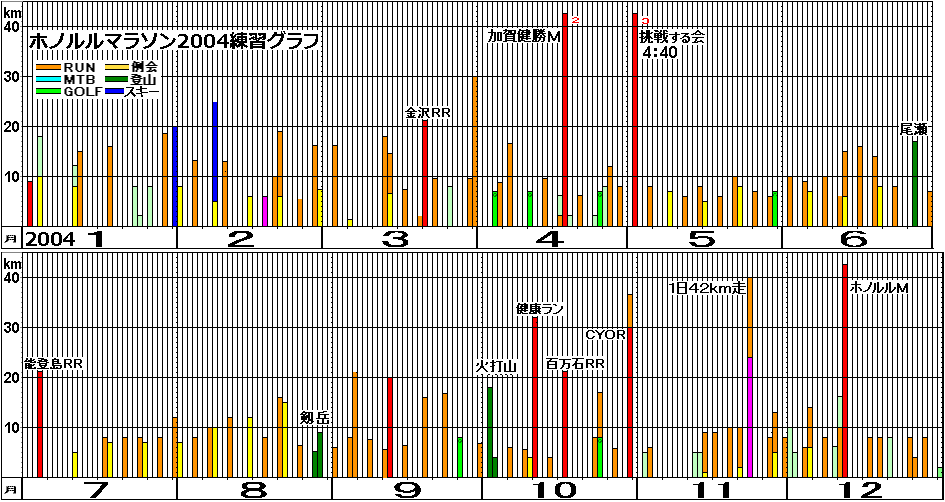 | ■走快:ホノルルマラソン2004練習記録【59歳】 | |