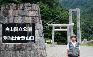 | 先週は立山登山で足慣らしができました。秋のような気配の天気が続いたので、白山に行こう。 実に30年ぶりの白山です。お花畑を撮影しようと3台のカメラを用意します。相棒のYさんは都合がつかないので単独行です。5時半に家を出て、順調なドライブで別当出合へ。ここで食事をして、登山口を7:35に出発。砂防新道経由で主峰の御前峰に11:15到着。3時間40分の快調な登りです。途中までは好天でしたが、室堂から上は濃いガスで、風も強くなっています。目的のお花畑撮影の『お池めぐり』は中止です。頂上で会ったご婦人はお花畑を楽しむために観光新道ルートで登ってきたとのこと。黒ボコ岩まで下るとガスはなくなり、日差しも強くなっています。今日の白山は頂上部が雲の中のようです。別当出合を16時の予定なので時間に余裕があります。帰路は観光新道に決め、お花畑をゆっくり写真撮影しながら楽しみました。 |