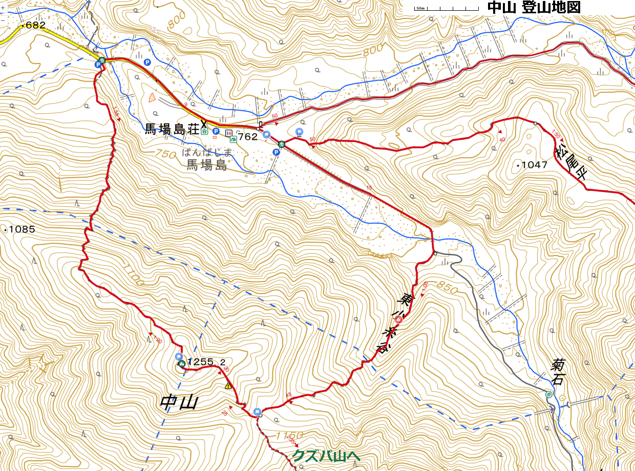 | 【日程・地図など】 22日 金沢発〜馬場島着(馬場島荘横の駐車場)=中山登山=馬場島発〜金沢着 駐車場〜東小糸谷登山口〜クズバ山分岐〜中山山頂〜五本杉ノ平〜中山登山口〜駐車場 |