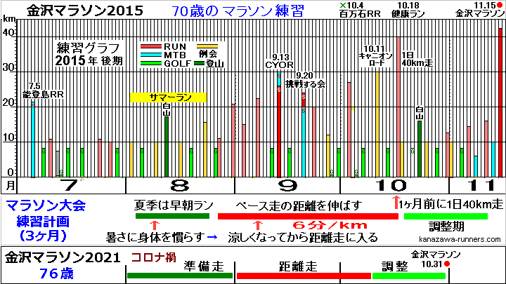 | 金沢マラソンの練習記録(2015〜2021年大会) | |
