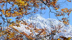 | ■新雪の北アルプス展望=富山県・中山の紅葉登山を楽しみました。 |