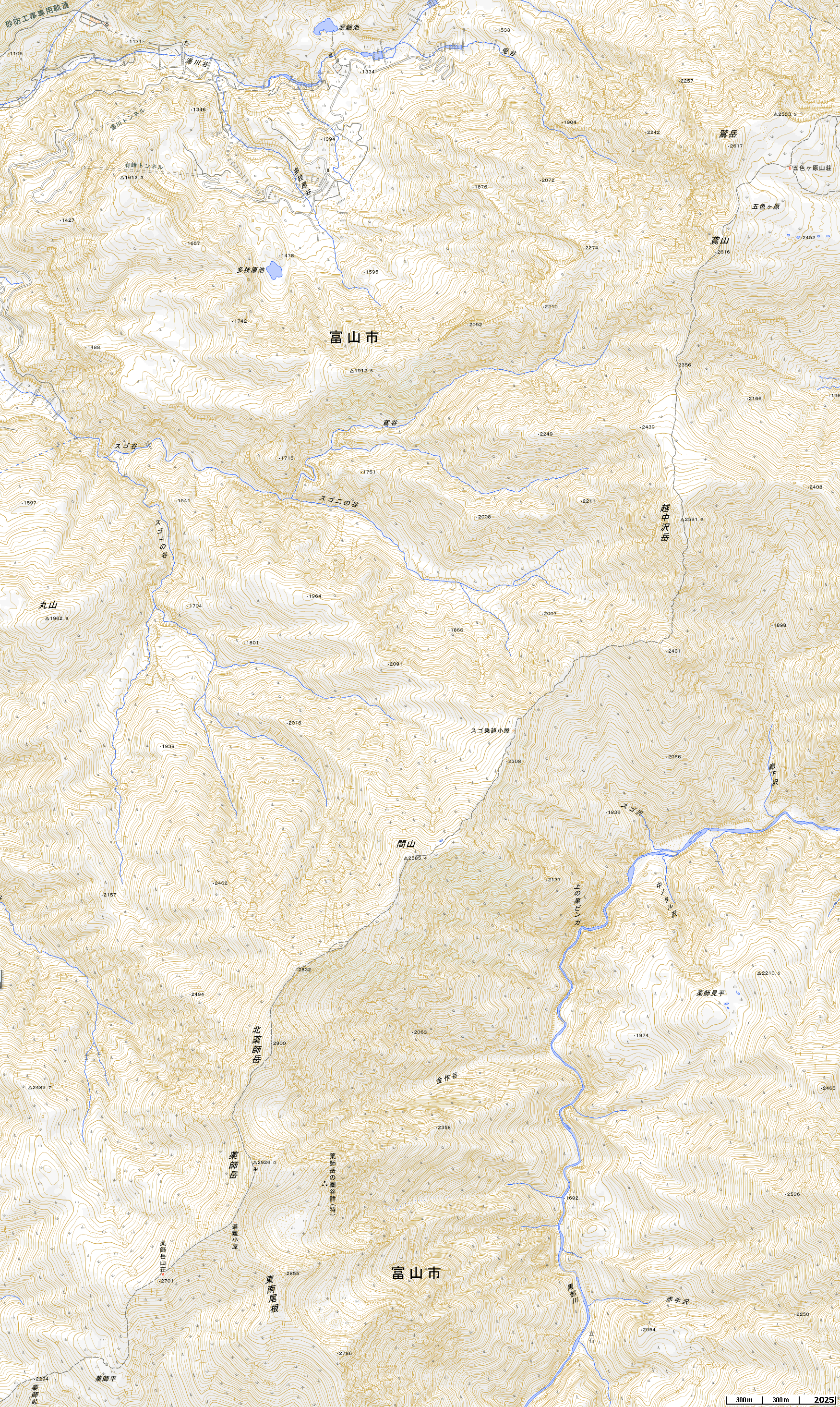 登山地図=薬師岳=五色ヶ原〜薬師岳