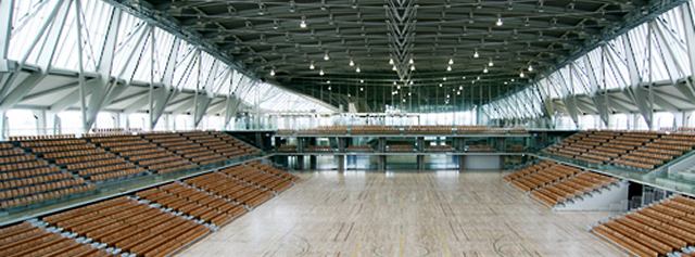 | 金沢総合体育館=観客席間に走路がある | ||