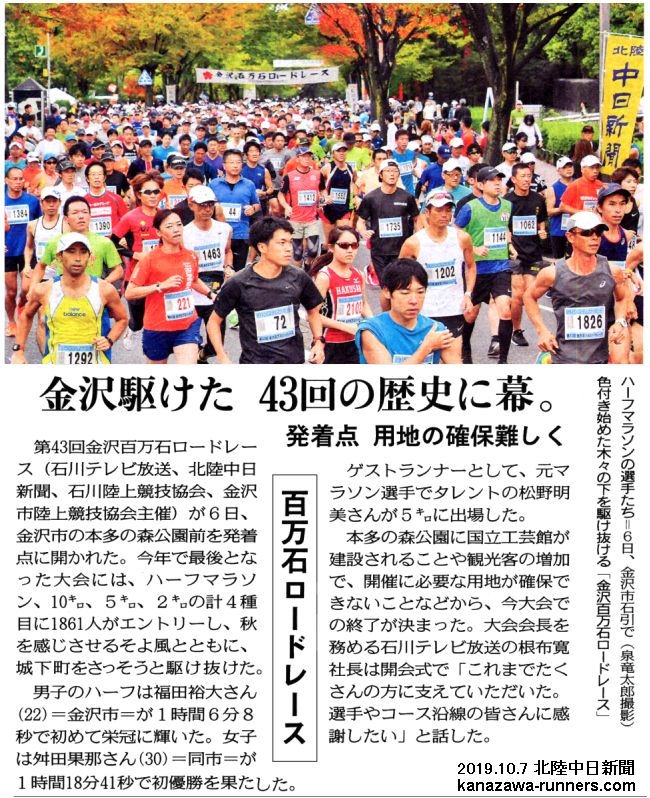 | ■金沢百万石ロードレースは今回(2019年大会)で終了です。=2019/10 |