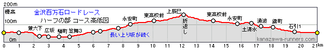 | ■コース高低図紹介=金沢の台地を走るので坂が特徴 |