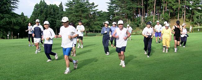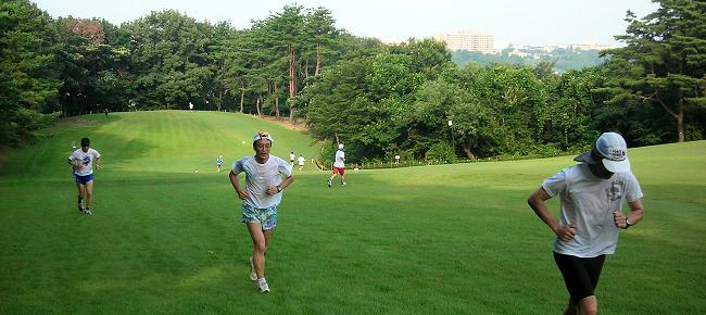 | 早朝の芝生ランニングはさわやかです。 |