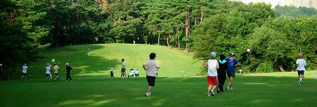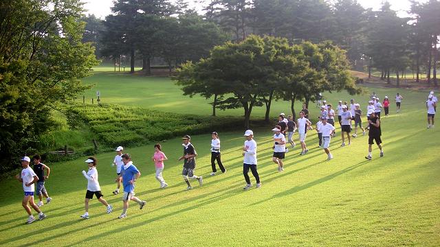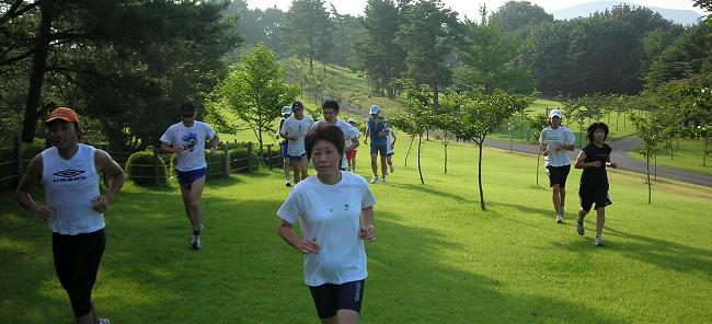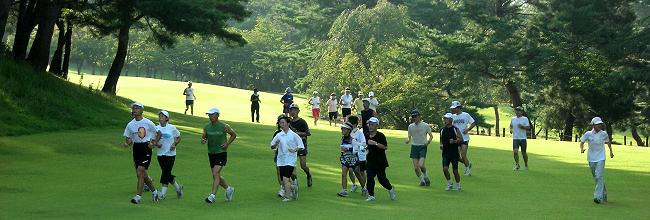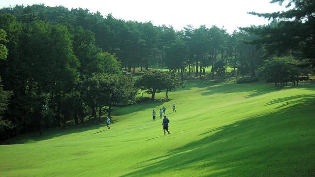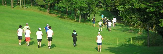 | 編集長の趣味はゴルフ。競技会の後で、コースを走らせてもらうことがあります。 スポーツ大会や発表会など、前夜は気持が高ぶって寝付けないことがあります。マラソンの場合は、ベッドに入って身体を休めておけば、寝不足でも、走り始めたらエンジンがかかります。ゴルフはメンタルな要素が常に入り込むため、事前の体調管理に疲れや睡眠不足は禁物です。そうしたことから、走りこみのシーズンにゴルフを入れると、事前のランニング練習を控えます。その代わり、ゴルフから帰ってから犀川コースを10km位走っていました。 土・日を中心にランニング練習をしていることから、距離不足を補っていたのです。 ある日、スタート・マスターに、コースを走らせてもらえないかと相談したら、プレーヤーの邪魔にならないなら、との嬉しい答え。次回にはランニングの準備をしてゴルフ場入り。月例競技会後で、一般のプレーヤーも少なかったことから、走れるチャンス。誰もいないコースを1ラウンド。約8kmのクロスカントリー走。その後は、大きな風呂で汗を流し、1日を満喫して帰路に。 フルマラソンを始めて、この6年間で24回完走。65歳を越しました。サブフォー維持の、こうした走り込みにも、自らブレーキをかける時期です。登山やゴルフの日にあわせて日頃のランニング練習を、組替えています。 自分でプレーしたコースで、ランニングは楽しいものですが、もっと身近で走りやすいのが、ここで紹介する奥卯辰山健民公園です。もとゴルフ場ですからクロスカントリー走には最高。芝の手入れもゴルフ場とちがってフェアウェーのカットがないことです。セミラフより長めのカットなので、とても柔らかです。 金沢中央走ろう会では8月の例会をこの公園で行っています。私は毎回、居残り練習をして、芝生公園を楽しんでいます。 |