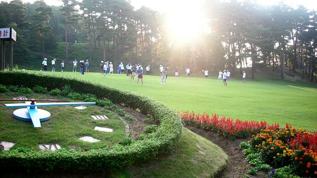 | ゴルフ場だった芝生公園。クロスカントリー走を楽しみます。 |