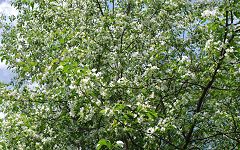 | 霧ヶ峰高原で点在しているコナシ(ズミ)の木。ちょうど開花を迎えている。 | ||